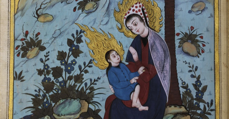Illustrazione: Ayşe Raziye Özalp, Natività nel deserto. Copia del XXI secolo di una miniatura del XVI secolo. Carta, inchiostro, foglia d’oro. Collezione privata.