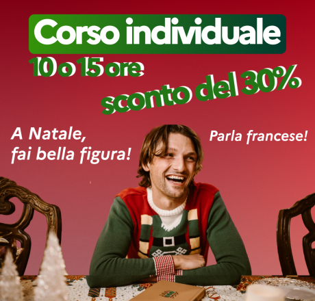 30% di sconto per il tuo corso individuale di 10 o 15 ore SUPER PROMO CORSI INDIVIDUALI 30% di sconto per il tuo corso individuale di 10 o 15 ore da svolgere fra dicembre e il 31 gennaio ( sospensione delle lezioni fra il 21 (...)